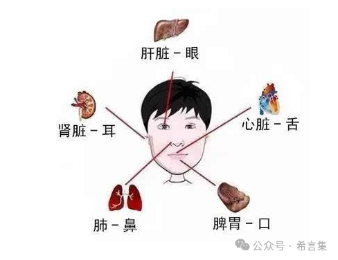 中医认为,人体五脏与五官之间存在着密切的联系:心开窍于舌、脾开窍于口、肺开窍于鼻、肝开窍于目、肾开窍于耳。也就是说,通过观察五官的异常情况,就能了解心、肝、脾、肺、肾可能存在的病变。